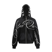 アメリカンスタイルダークファッションスカルプリントジッパープルオーバーカジュアルフード付きフリース滑り止めスウェットシャツ100% コットンニット冬