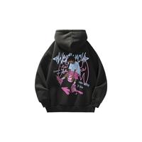 サブカルチャーアメリカンストリートグラフィティデジタル印刷無地冬フード付きスウェットシャツメンズルースフィットプルオーバーアンチピリング