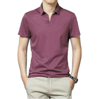 เสื้อผู้ชายแขนสั้นสำหรับฤดูร้อน สีพื้น ปกพับ ผ้าถัก ป้องกันรอยยับ ทรงหลวม แห้งเร็ว ใช้เป็นเสื้อตัวในได้