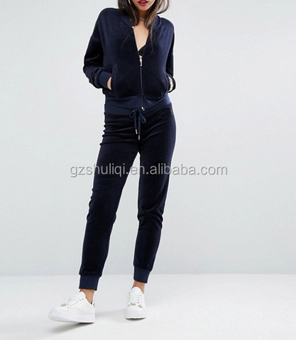 Prink bleu marine velours femmes ensemble de vêtements de sport de haute qualité personnalisé chaud Jogging costumes respirant Fitness grande taille conception unie
