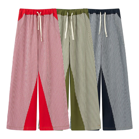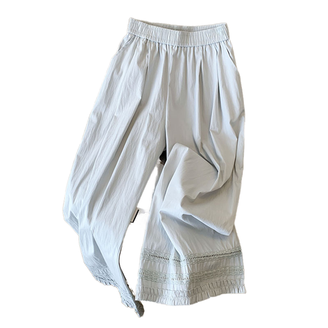Boetiek 2025 Zomercollectie Dames Nieuwe Kant Splicing Ademend Canvas Casual Wijde Pijpen Hoge Taille Afslankbroek Groothandel