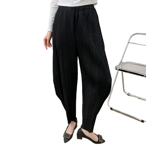 Miyake Dames Hoge Taille Slanke Harem Wijde Pijpen Broek Met De Hand Geplooide Casual Broek Met Elastische Taille Sluiting Nieuwste Hot Sale