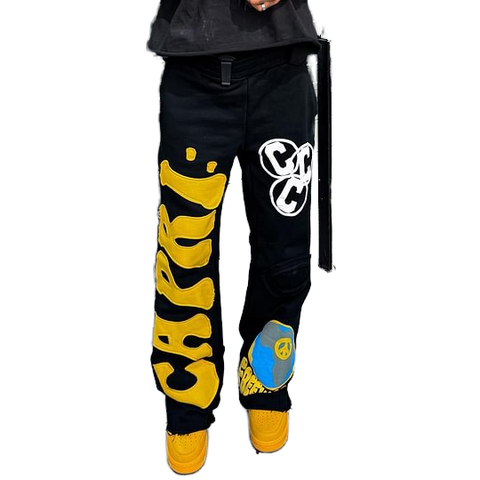 Distressed Borduurwerk Patch Joggingbroek Voor Mannen Voor Rauwe Zoom Bladerdeeg Bedrukking 100% Katoen Mid Street Hiphop Outdoor Modebroek