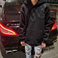 Sudadera con capucha para hombre, bordado de grava, industria pesada, chaqueta de calle, Unisex, estudiante, pareja, forrado, 100% algodón, sólido, de gran tamaño $16.65