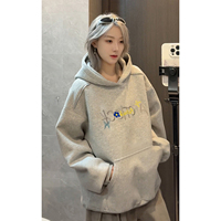 Màu Xám nặng khắc Laser thiết kế thư 100% cotton chống pilling trùm đầu Áo Thun lỏng phù hợp với nam mùa thu đông mát mẻ