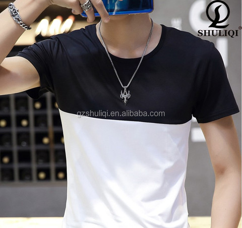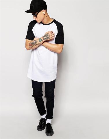 Thời Trang Hot Bán Hai Tone Quá Khổ T-Shirt Dài Dòng T Áo Sơ Mi Nam Màu Đen Và Trắng